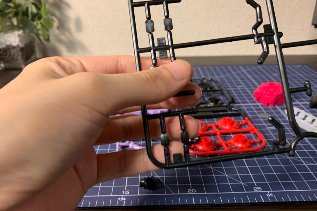 「工具いらず」という謳い文句が気になったので、ニッパーもナイフを使わずランナーから取り外してみました。