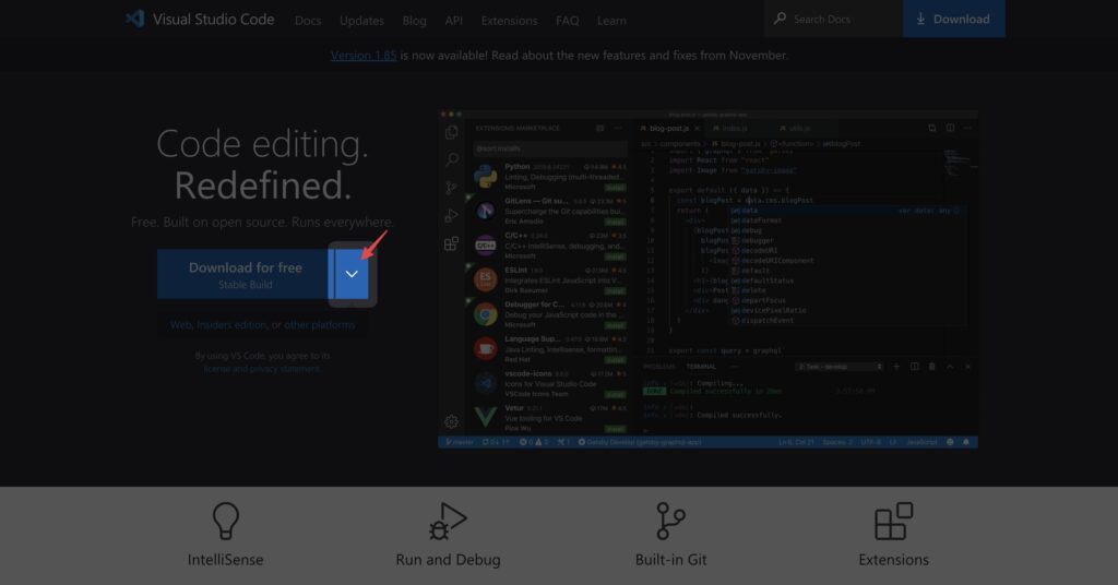 ⌘ + Shift + Xすると拡張機能のマーケットプレースがタブが開くと思います。