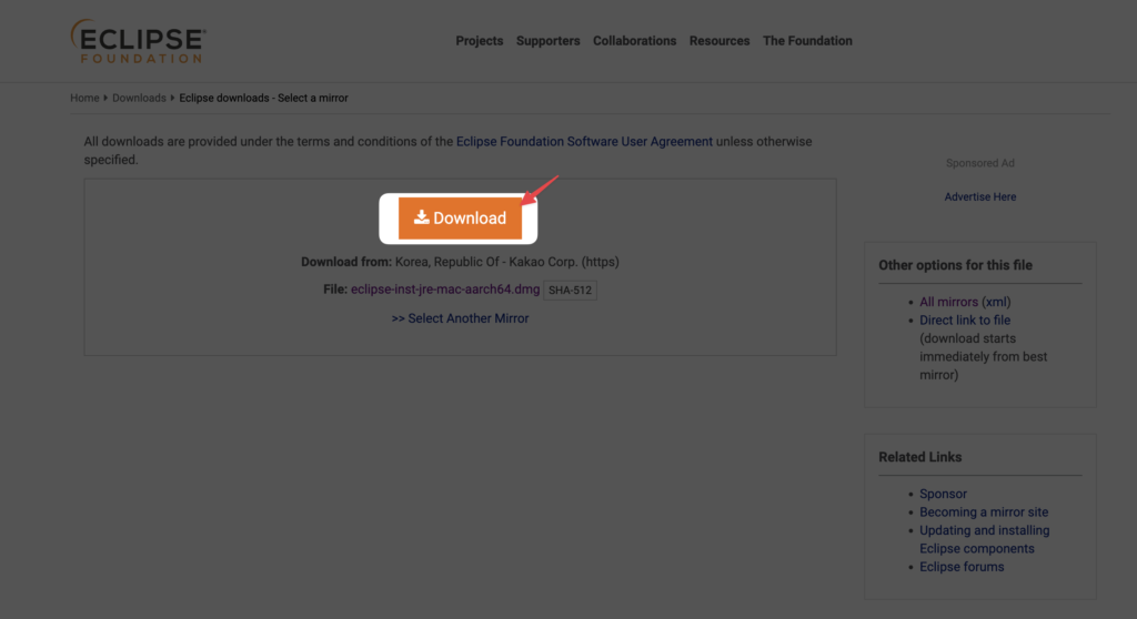 Apple製のチップを利用しているMacにEclipseをインストールする場合は、公式サイトからEclipseをダウンロードします。