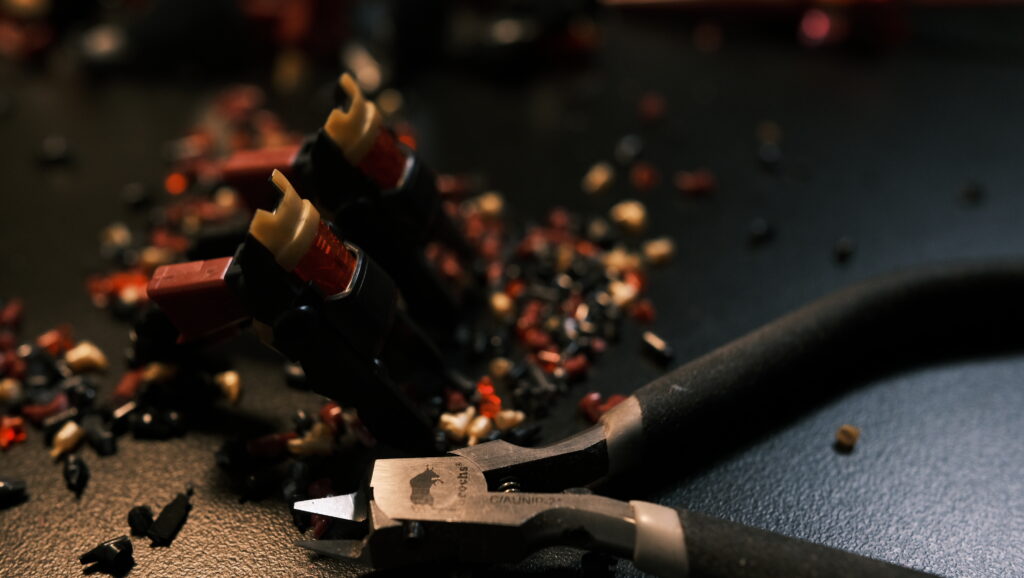 さっそくニッパーとヤスリを準備し組み立てていきます。