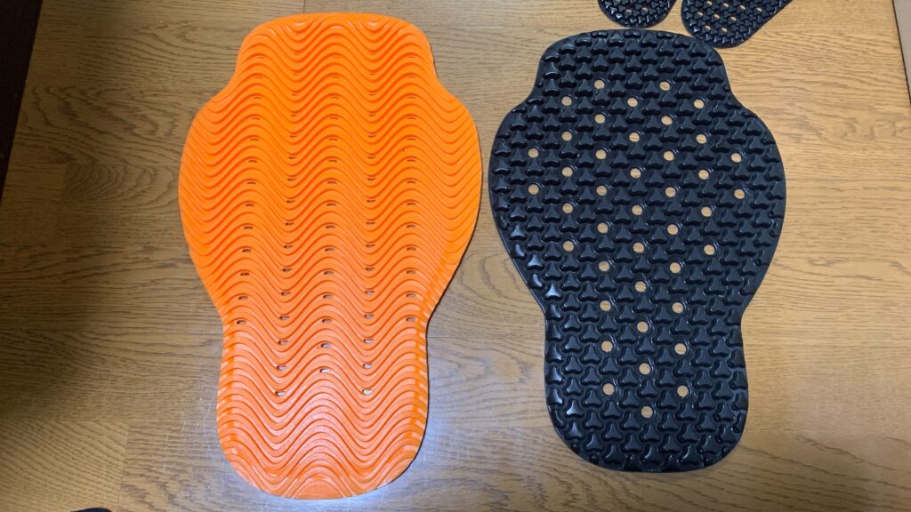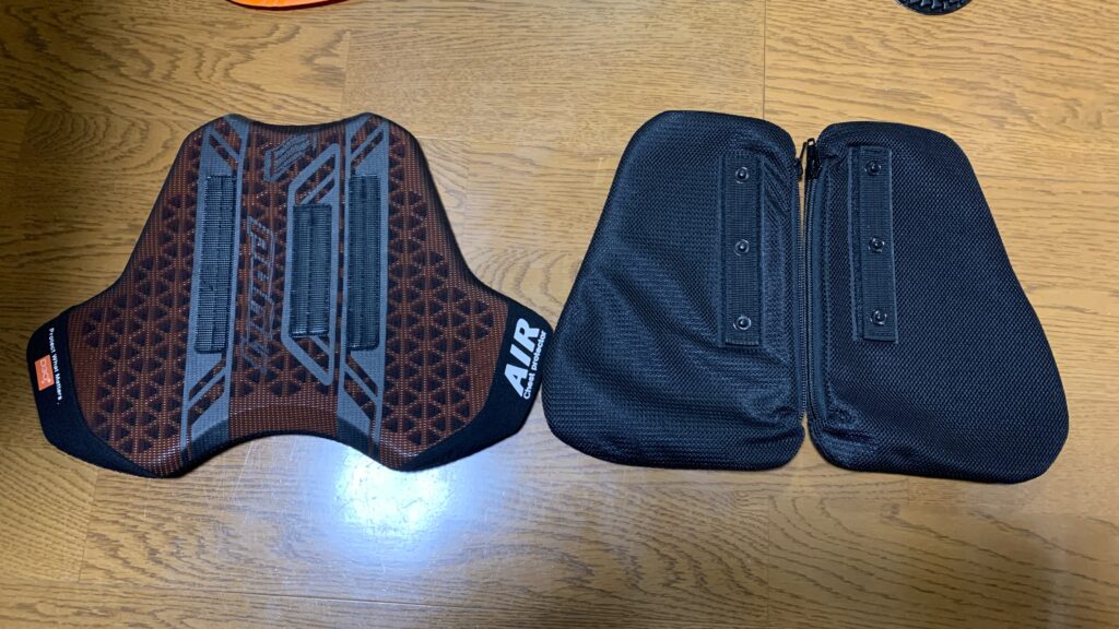 背中については、どちらでもいいかなと思ったのですがHYODさんのほうだとちょっと大きく、ジャケットに入りませんでした。そのため、背中もSAS-TECにしました。