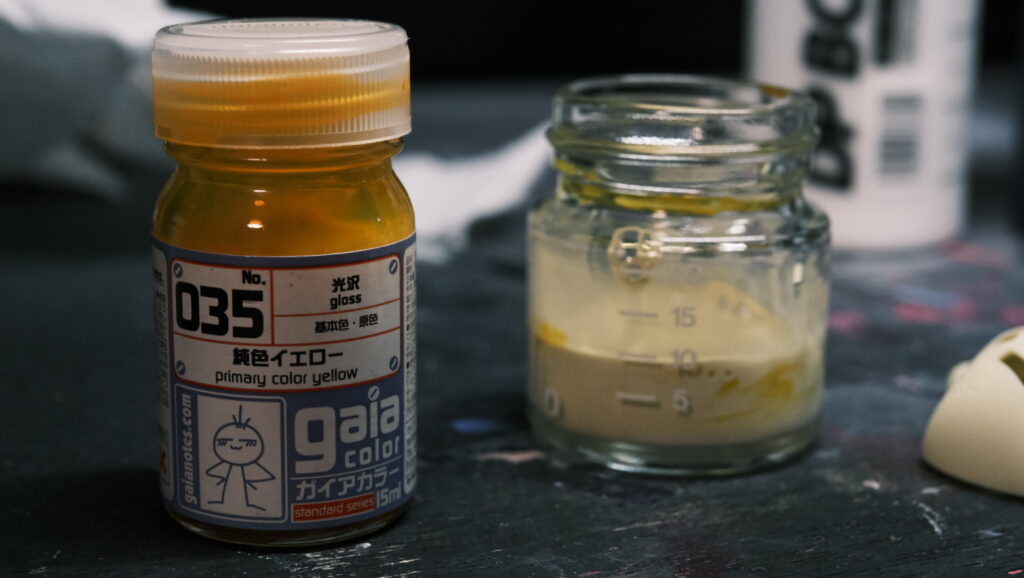 本体カラーの黄色にちょうどいい色がなかったので、少し調色しました。