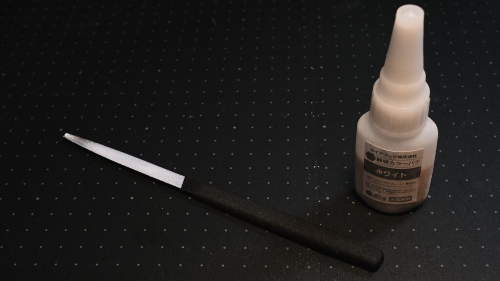 塗装したとき下地に影響が出ないよう比較的色が近い、白のパテを使いました。