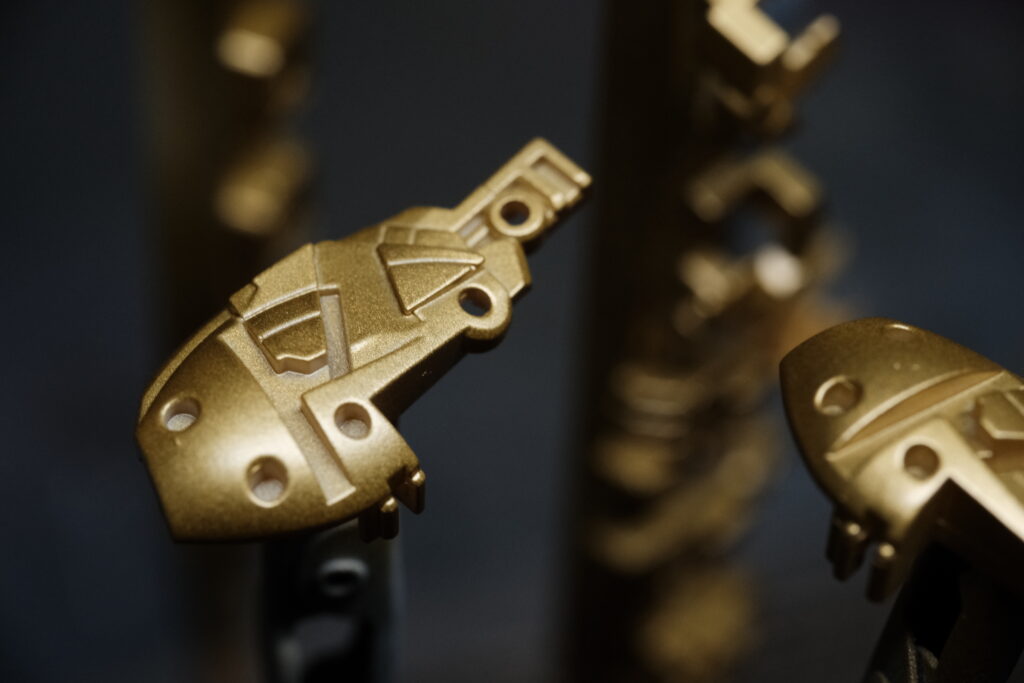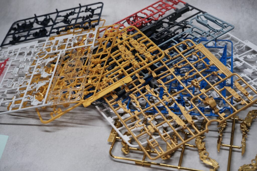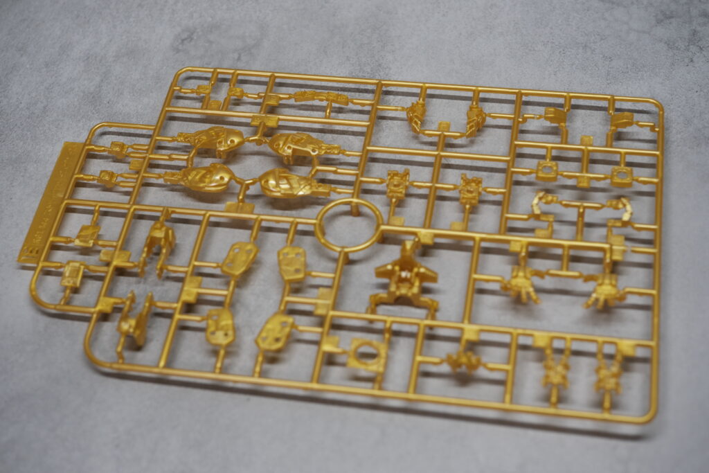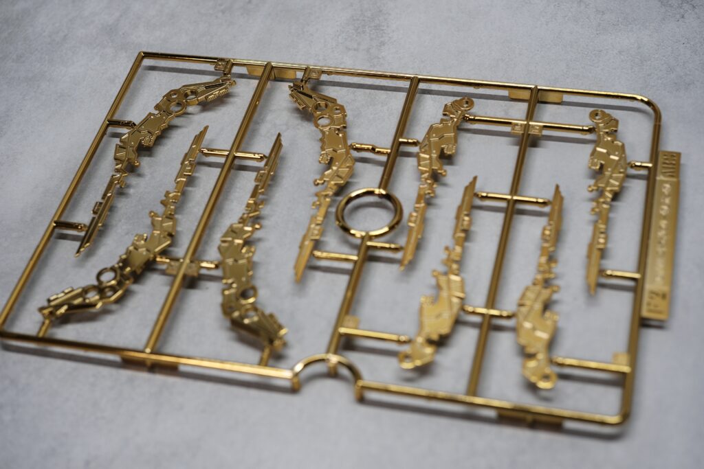 ゴールドパーツは3種類に分かれており、ウィング部分のパーツはメッキ塗装されています。