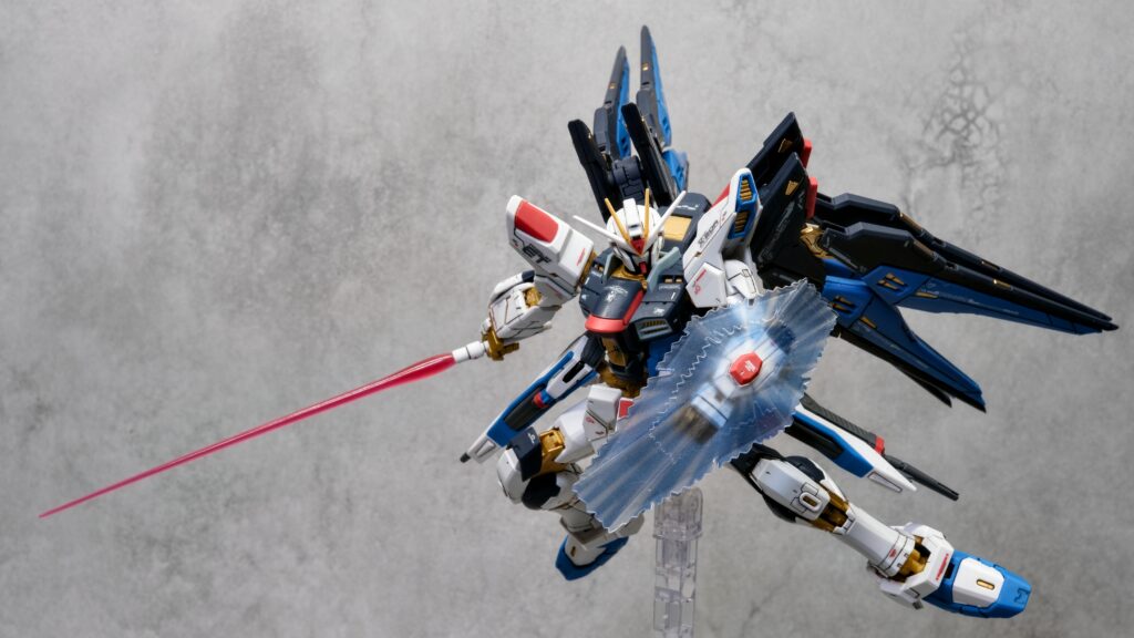 ストライクフリーダム自体ギミックが多彩なので、ポーズとっていてもとても楽しいキットです。