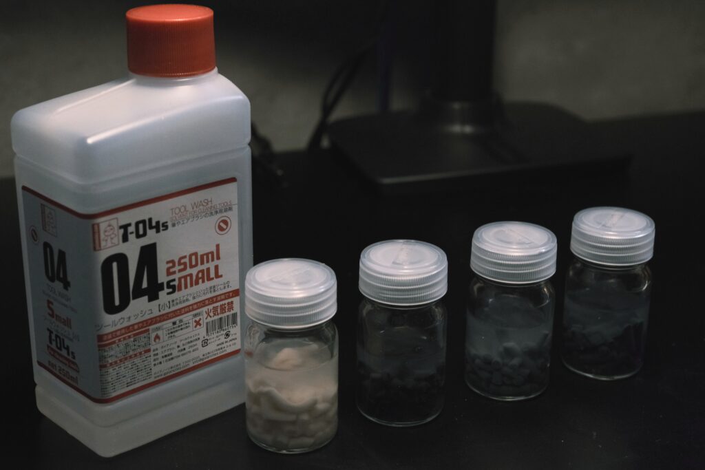 瓶に入れたらそこにツールクリーナーを注ぎます。