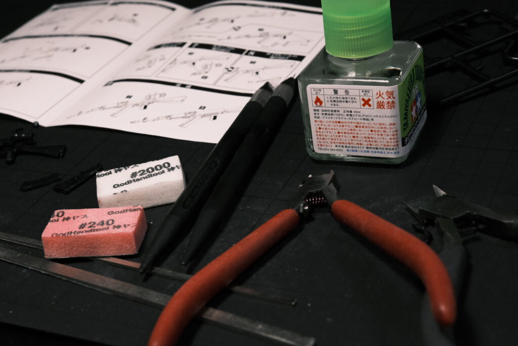 シンプルにニッパーとヤスリ、接着剤で組み立てます。
