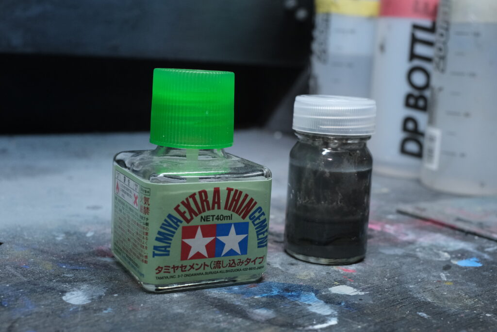 流し込み接着剤を基本としつつ、ランナーパテも使って段差を埋めます。